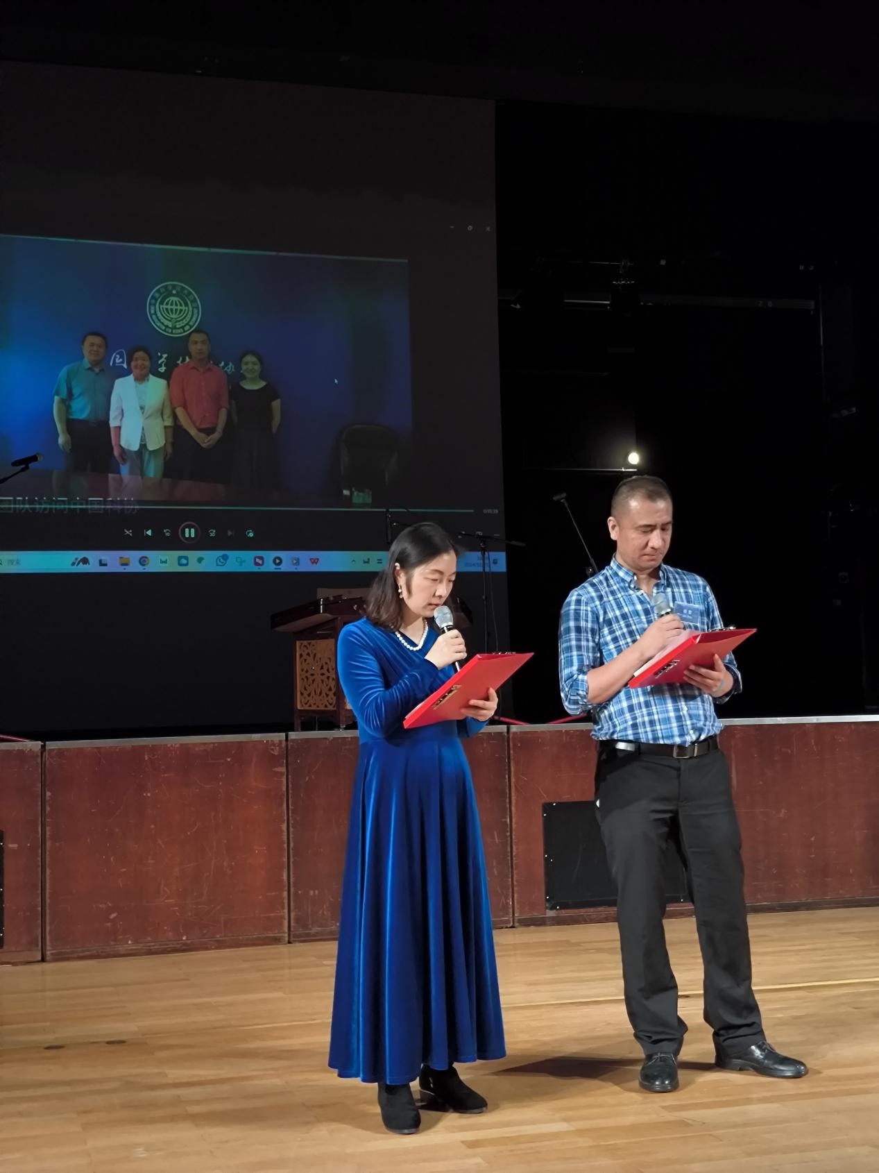 随着晚会的序幕缓缓拉开, 由肖灵艳创作的《中欧科技桥梁颂:友谊与合作之光》以其深沉的韵律和饱含情感的朗诵,将中欧科技合作的美好愿景传达给了在场的每一个人。肖灵艳和侯君的深情演绎,让在场的观众仿佛看到了中欧科技合作的未来,充满了希望和期待。