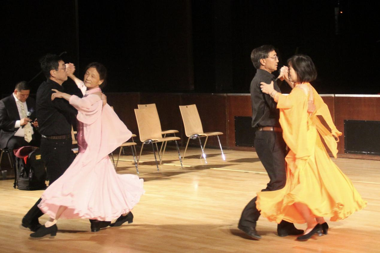 晚会的尾声由于金翔和殷丽萍带来的国标交谊舞表演及集体舞教学环节推向高潮,观众们纷纷加入,随着欢快的节奏跳起了舞,气氛热烈。活动最后还安排了交际舞舞会,大家在欢快的音乐中结束了这场难忘的联欢。