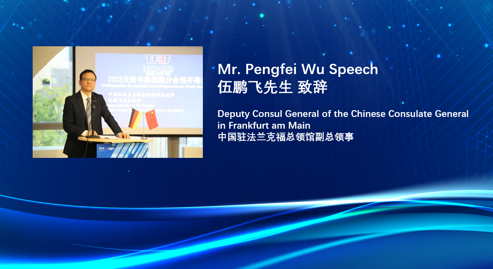 首届中欧科学家论坛于2024年10月21日于德国法兰克福召开,中国驻法兰克福总领馆伍鹏飞副总领事在中欧科学家论坛主论坛发言致辞: