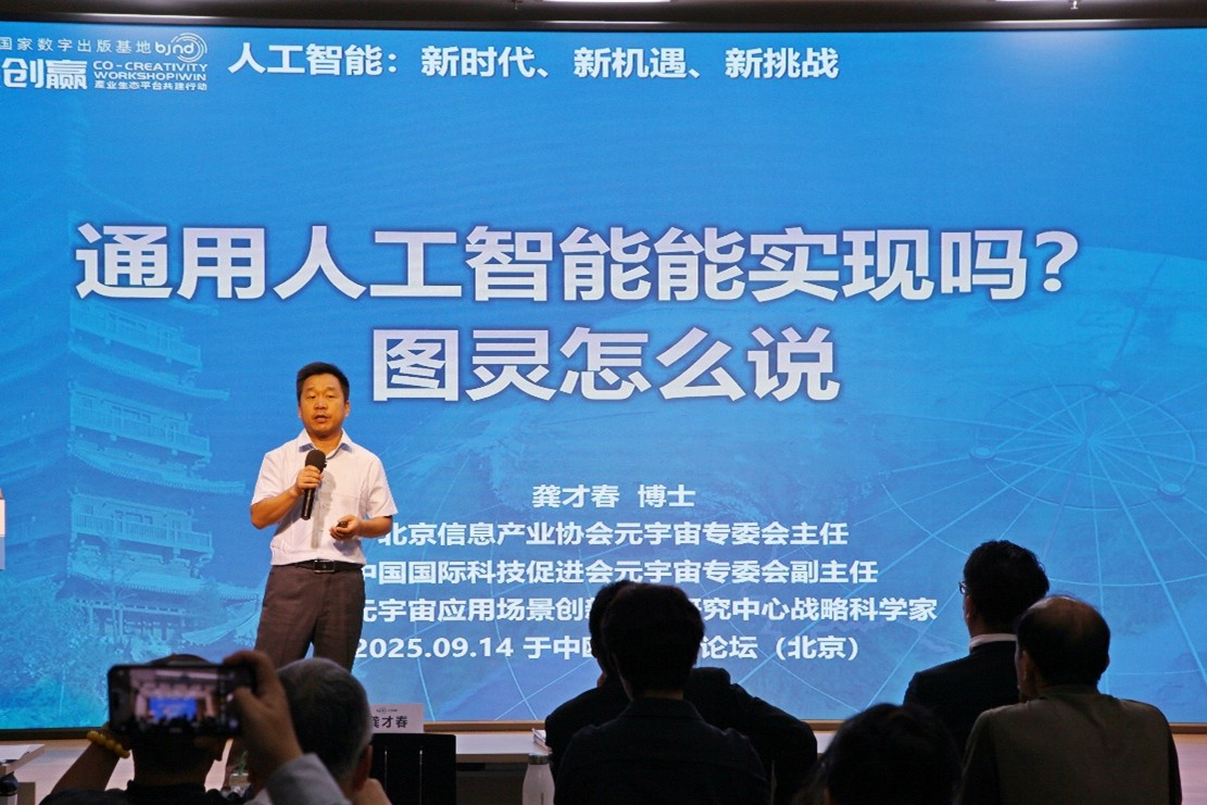 北京信息产业协会元宇宙专委会主任龚才春博士发表了《通用人工智能能实现吗?图灵怎么说》的主题演讲。在大模型蓬勃发展、通用人工智能备受热议,且各界对其前景看法不一之际,龚才春借助哥德尔不完备定理与图灵不可判定定理,表明机器无法涵盖人类全部知识。同时,他援引图灵1950年论文观点,阐述图灵对否定人工智能看法的驳斥,以及对人机知识差异的探讨,并指出通用人工智能的实现只是时间问题,呼吁提前做好技术储备,完善伦理、道德等多领域应对举措,引发了现场嘉宾对通用人工智能发展的深入思考。