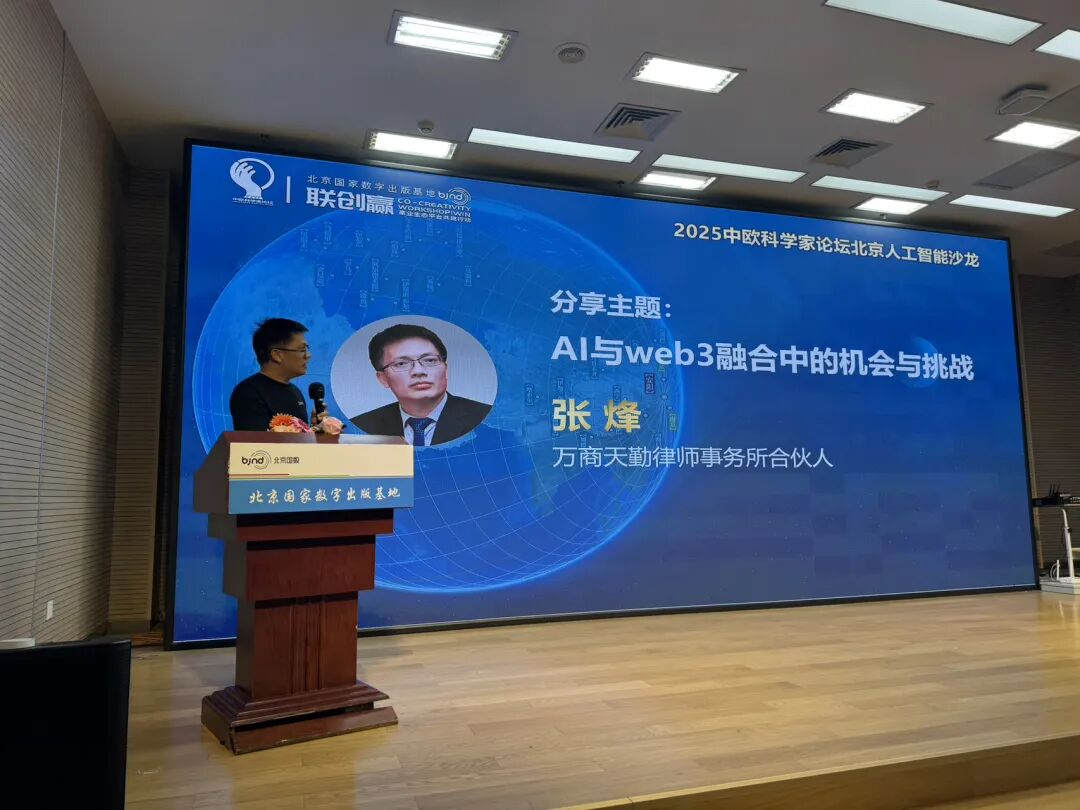万商天勤律师事务所合伙人张烽围绕“AI与web3融合中的机会与挑战” 进行了阐述:WEB3与AI融合将重塑商业格局,AI推动生产力革命,WEB3重构生产关系,二者结合形成“智能与价值的互联网”。战略机遇包括数字化资产(如RWA)、数据资源资产化、去中心化应用(DApp)等万亿级市场。同时强调需警惕监管不确定性、技术风险、数据隐私与伦理问题等挑战。建议企业拥抱变革、注重合规、优先合作、伦理前置,在创新与合规之间寻求动态平衡,以实现可持续价值创造。