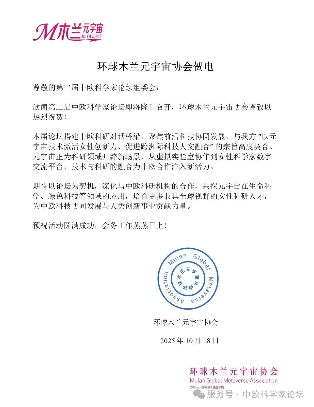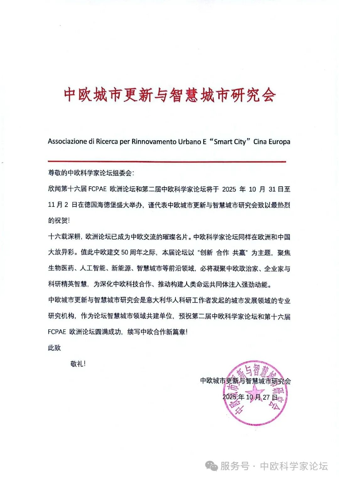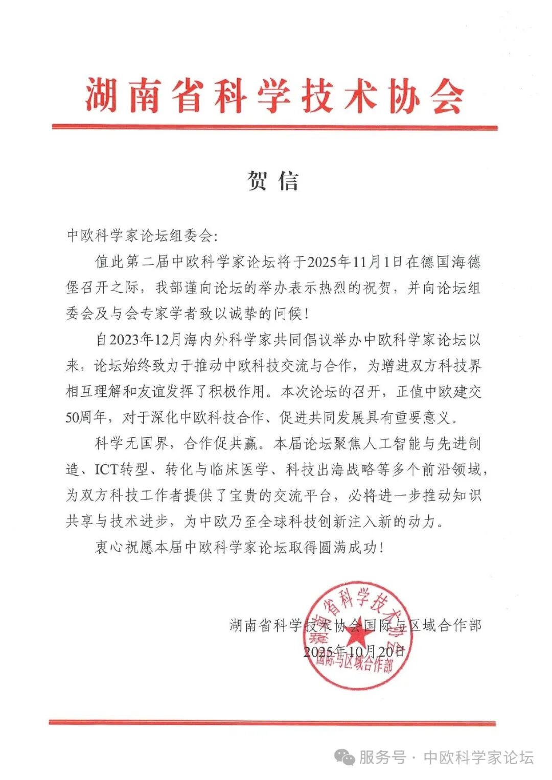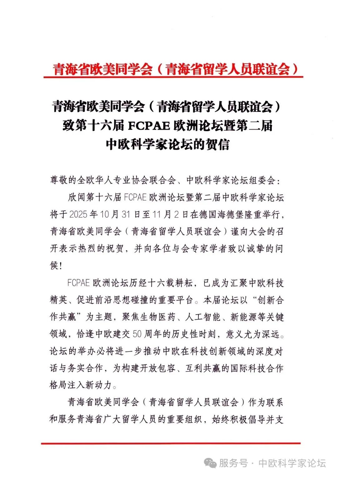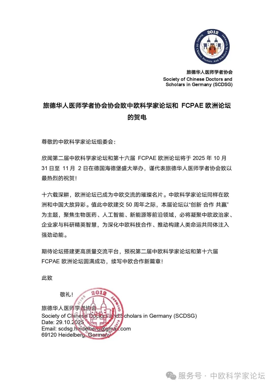 注:中欧科学家论坛(chinaeuropeforum.org)是一个全新的开放式的合作平台,首届中欧科学家论坛已于2024年10月在德国法兰克福成功举办,第二届中欧科学家论坛已于2025年11月初在德国海德堡市成功举办,感谢中国驻德大使馆总领馆、中国科协、中国侨联、诺贝尔奖获得者、德国英国法国国家科学院院士、科技专家等社会各界的大力支持。新华社、人民日报、CCTV中文网、中华网、北欧时报等数十家海内外主流媒体报道。目前中欧科学家论坛签约共建备忘录的机构70余家。在各方的共同努力下,中欧科学家论坛持续发挥重要平台作用,推动中欧乃至全球科技事业不断向前迈进,目前各种专业平行论坛总数达到十余个,成为欧洲华侨主导的最大科技盛会。